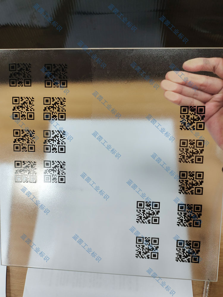 光伏玻璃、鋁框架、表面膜 追溯防偽二維碼、條碼高清高附著UV噴碼機打樣效果