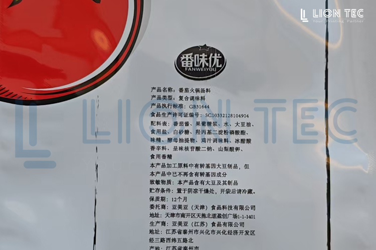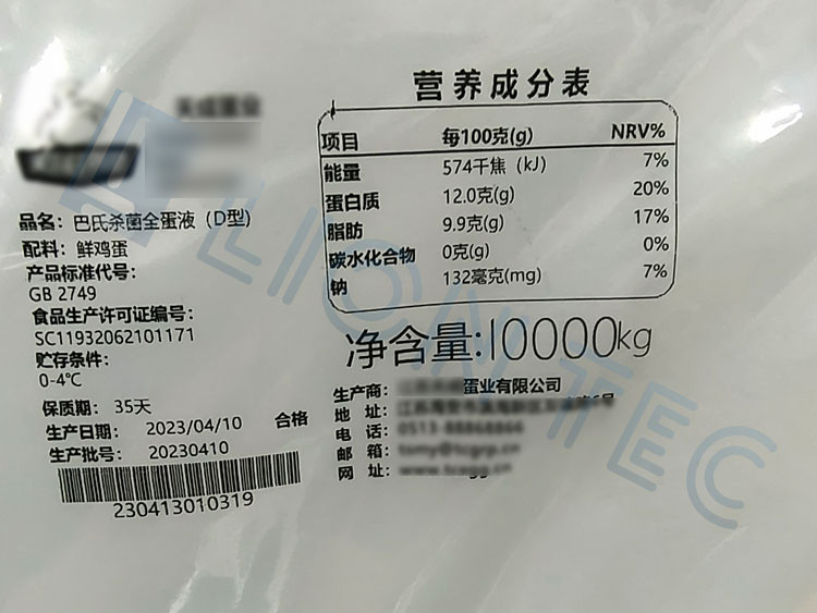 藍(lán)茵UV噴碼機可實現(xiàn)在食品塑料pe膜包裝袋上噴印營養(yǎng)成份表、logo、產(chǎn)品信息、廠家信息,等寬幅大幅面內(nèi)容,實現(xiàn)高清晰、高附著噴印效果