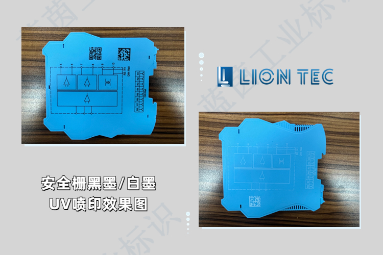 客戶在藍(lán)茵通過UV噴碼機(jī)打樣的安全柵產(chǎn)品的效果圖。噴印內(nèi)容包括線路圖標(biāo)識(shí)、二維碼,一面打黑墨,一面打白墨。