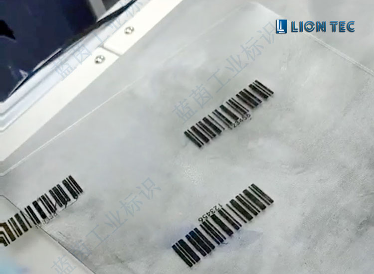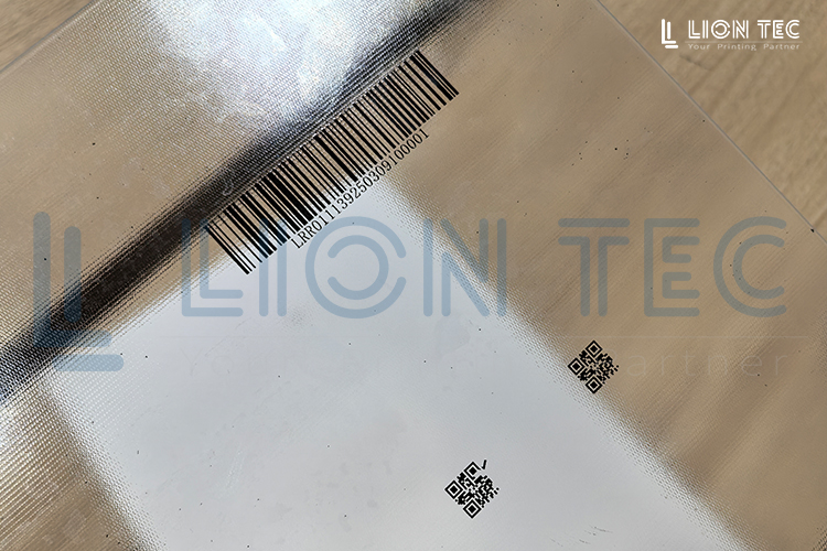 某光伏行業(yè)客戶在我司打樣的光伏玻璃面板,要求在玻璃表面噴印條形碼和數(shù)字,以下是通過UV噴碼機打樣的效果圖